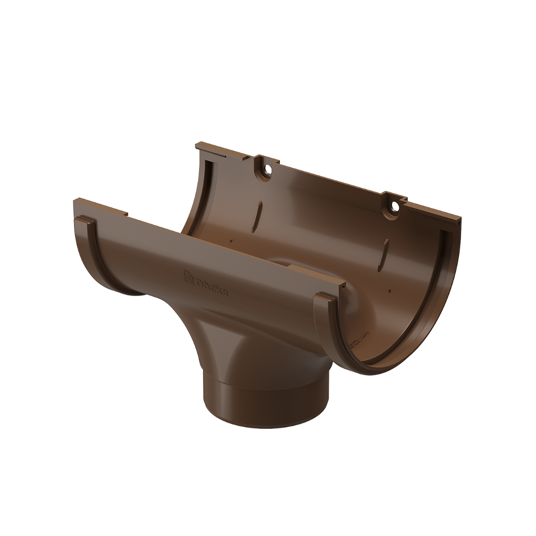 Светло-коричневый цвет воронки и остальных частей водостока - один из шести цветов на выбор. Такое разнообразие позволяет подобрать водосточную систему к строениям с крышами и фасадами любого оттенка. Приобретайте прочные пластиковые водостоки Docke с гарантией производителя у официальных дилеров по всей стране.