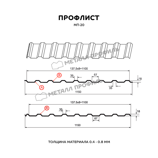 Профлист МЕТАЛЛ ПРОФИЛЬ МП-20x1100-R NormanMP (ПЭ-01-7016-0,5) часто используется для оформления кровли. Представляет собой лист оцинкованной стали с покрытием. Толщина стальной основы с оцинковкой и защитно-декоративным покрытием составляет 0.5 мм. После проката на специальном оборудовании сталь принимает волнообразный вид. Несущая способность профилированного листа на порядок выше плоского.