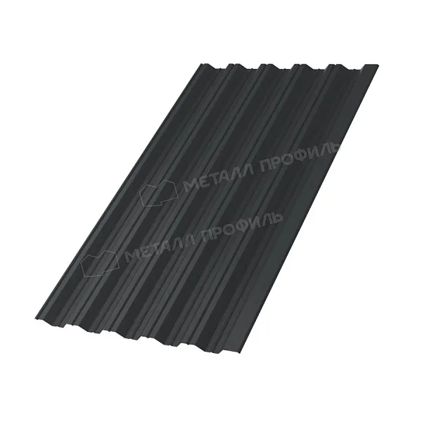 Профлист МЕТАЛЛ ПРОФИЛЬ МП-35х1035-A (VikingMP-01-7016-0,45) часто используется для монтажа профилированного листа. Представляет собой лист оцинкованной стали с покрытием. Общая толщина стальной основы с цинковым и защитно-декоративным покрытием — 0.45 мм.После проката на специальном оборудовании сталь приобретает рисунок из повторяющихся волн. Несущая способность такого листа гораздо выше плоского.
