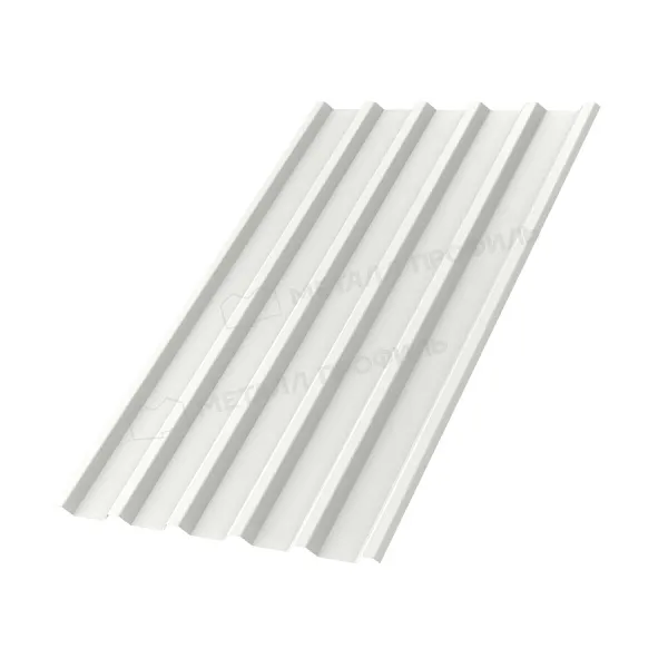 Профлист МЕТАЛЛ ПРОФИЛЬ МП-35х1035-B (PURMAN-20-9010-0,5) широко применяется для монтажа профилированного листа. Изначально он представляет собой лист оцинкованной стали с покрытием. Общая толщина металла с оцинковкой и декоративно-защитным покрытием составляет 0.5 мм. Проходя процедуру холодного проката, сталь приобретает рисунок из повторяющихся волн. Такая конфигурация придает профилю несущую способность.