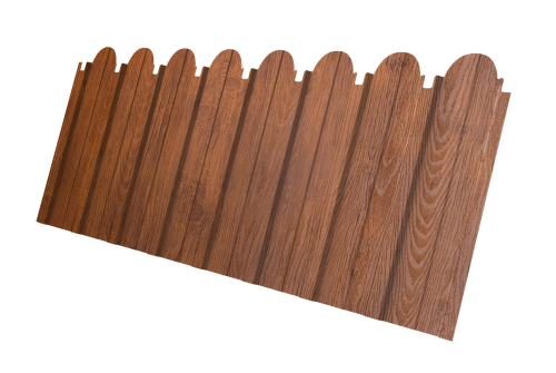 Grand Line представляет традиционный профнастил C10 в новой форме. Декоративная вырубка по верхнему краю листа позволяет возвести надежное, экономичное и при этом привлекательное ограждение. Профнастил C10 с фигурной кромкой имитирует классический русский деревянный забор.