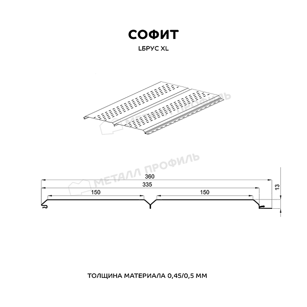 Софит Металл Профиль перфор. Lбрус-XL-14х335 (ПЭ-01-3011-0.45)