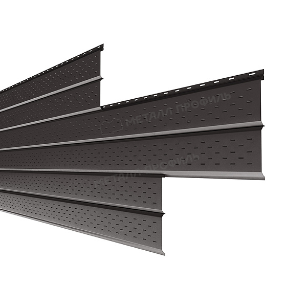 Софит – это планки сайдинга Lбрус, на поверхности которых нанесены мелкие отверстия. Используется для подшивки кровельных свесов. Софит подчёркивает законченный и аккуратный вид здания. Перфорация в планках обеспечивает доступ воздуха в подкровельное пространство и предотвращают появление конденсата, плесени, грибка.Покрытие PURMAN®: