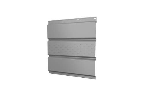 Описание товара: "Софит металлический центральная перфорация 0,5 Satin с пленкой RAL 9006 бело-алюминиевый"